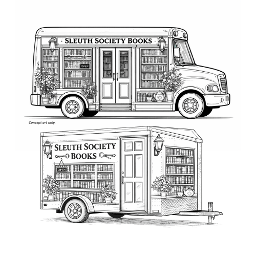 Sleuth Society Books is a pop-up mobile bookstore dedicated to mysteries and thrillers—classic whodunits, modern crime, cozy reads, and curious stories—soon to be housed inside a thoughtfully converted bookshop on wheels.